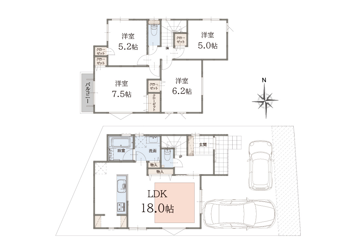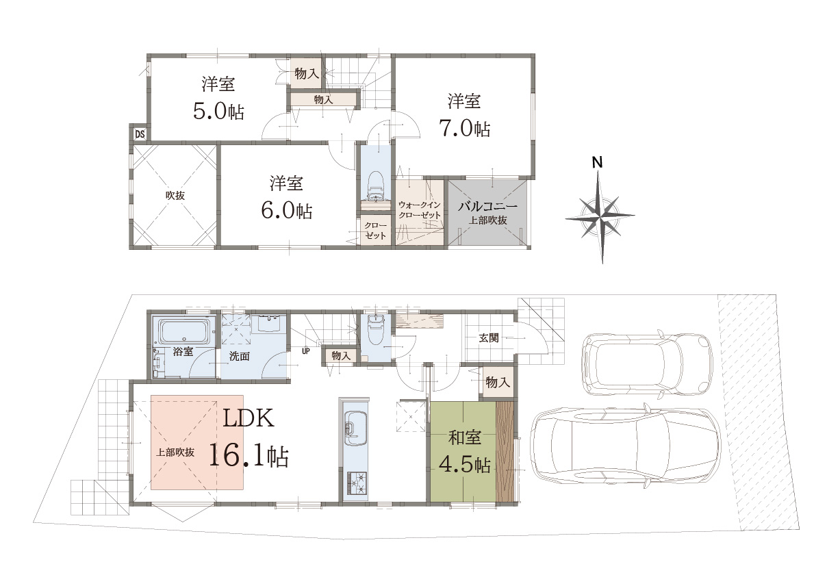 (1階面積/46.17㎡ | 2階面積/48.97㎡)